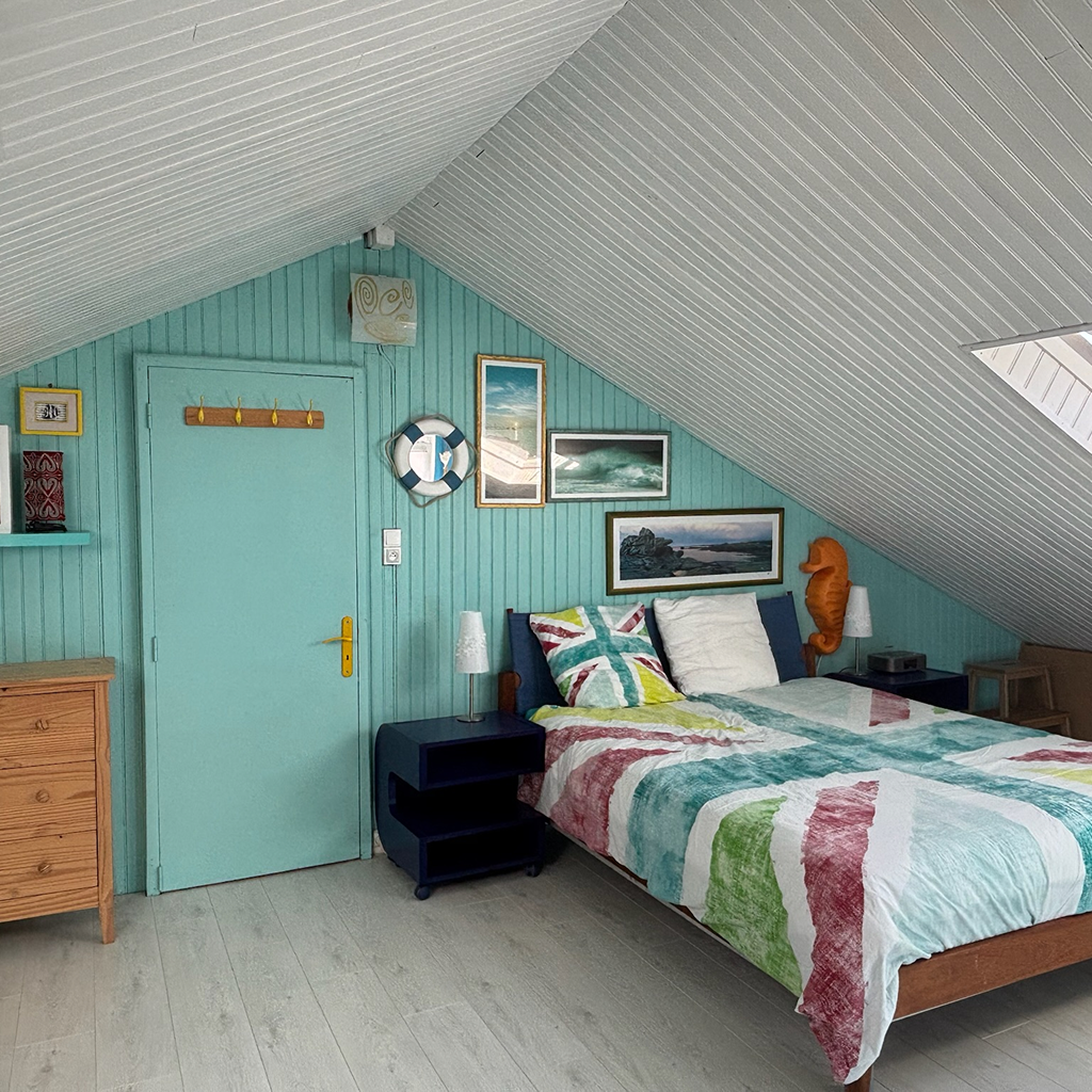 Au Rdc, cuisine équipée, salle à manger vue mer, salon avec un grand canapé d'angle et TV, WC séparé et la salle d’eau rénovée avec douche à l'italienne. Les 2 chambres sont au premier étage : une grande chambre lumineuse avec lit double (160 cm, literie neuve haut de gamme) qui offre une vue sur le phare (dépaysement garanti et couchers de soleil sublimes), une seconde grande chambre avec 4 lits simples (90x190, sommiers à lattes et matelas récents).